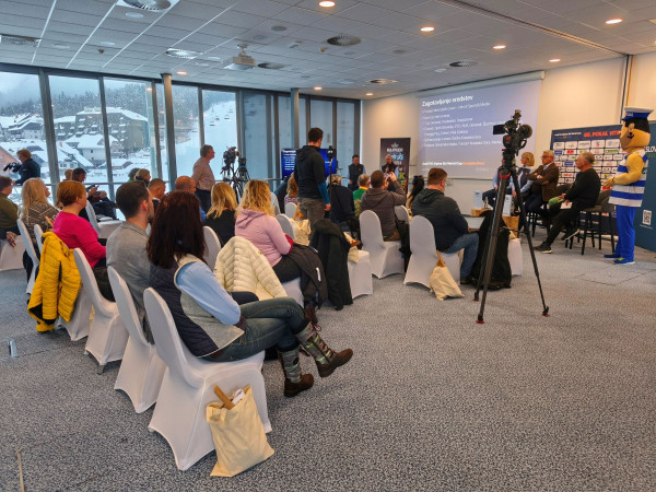 The details of this year’s edition of the Cup were presented at a press conference held in a truly special setting – on the top floor of our Ramada Resort hotel, in the beautiful Planica Hall. Such height can mean only one thing: a truly breathtaking view. Through the large panoramic windows, guests enjoyed sweeping views of the ski slope behind the hotel, the lively buzz surrounding it, and the mighty, freshly snow-covered peaks in the distance. Just a few days before the conference, nature had generously blessed our destination with abundant snowfall, completely blanketing Kranjska Gora in white and creating a genuine – almost picture-perfect – winter backdrop. It was no surprise that the journalists’ gazes repeatedly drifted toward the snowy slopes during the presentation.
